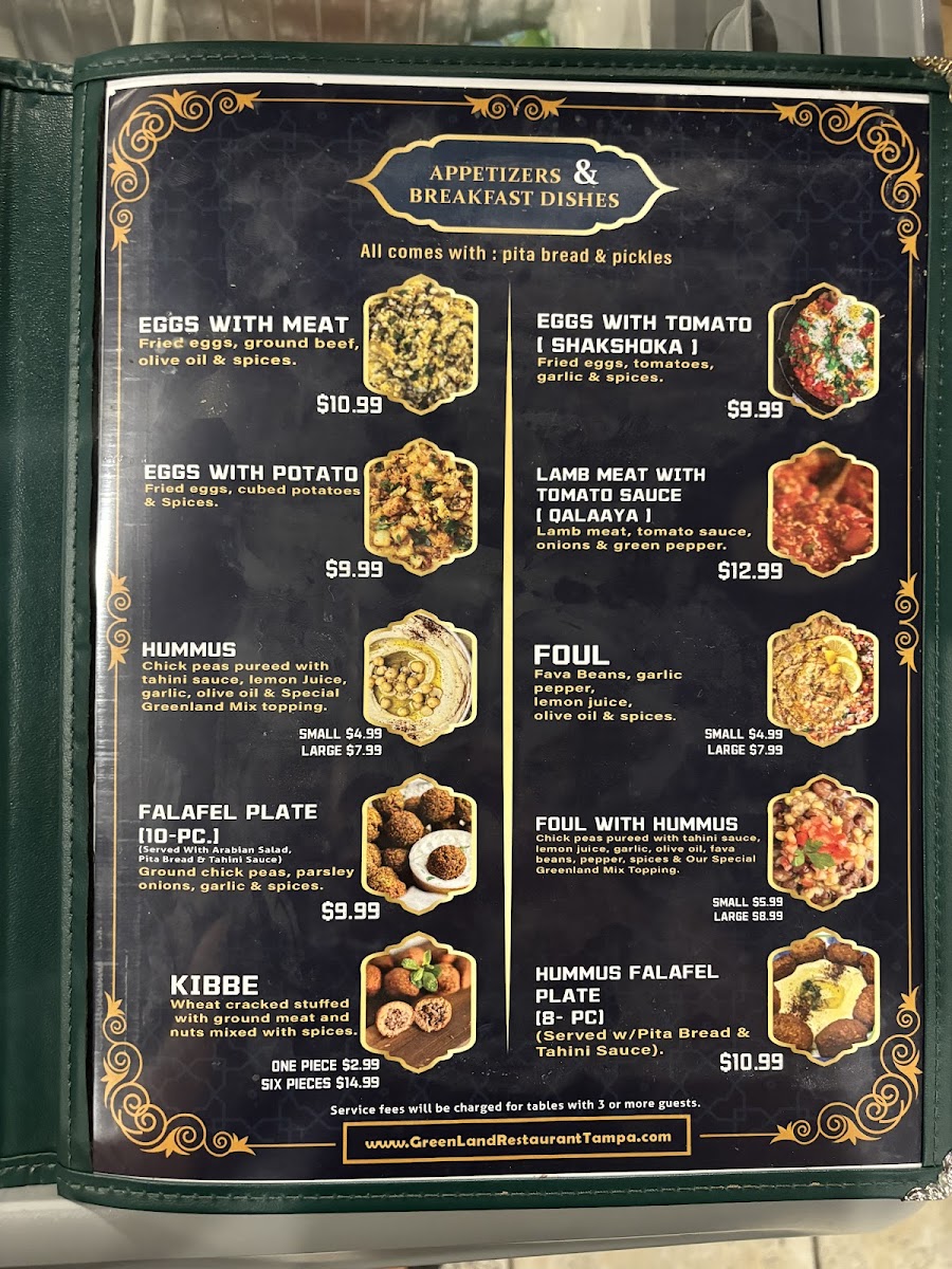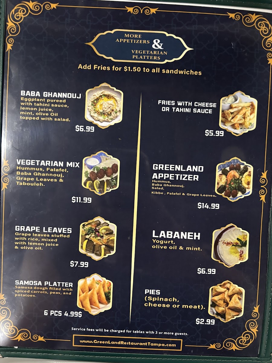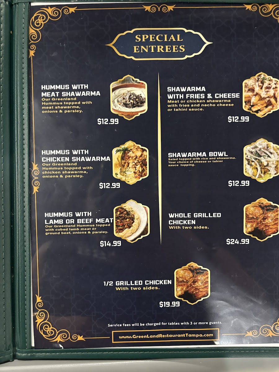 Chick peas pureed with tahini sauce, lemon juice, garlic, olive oil, fava beans, pepper, spices and our special Greenland mix topping.
